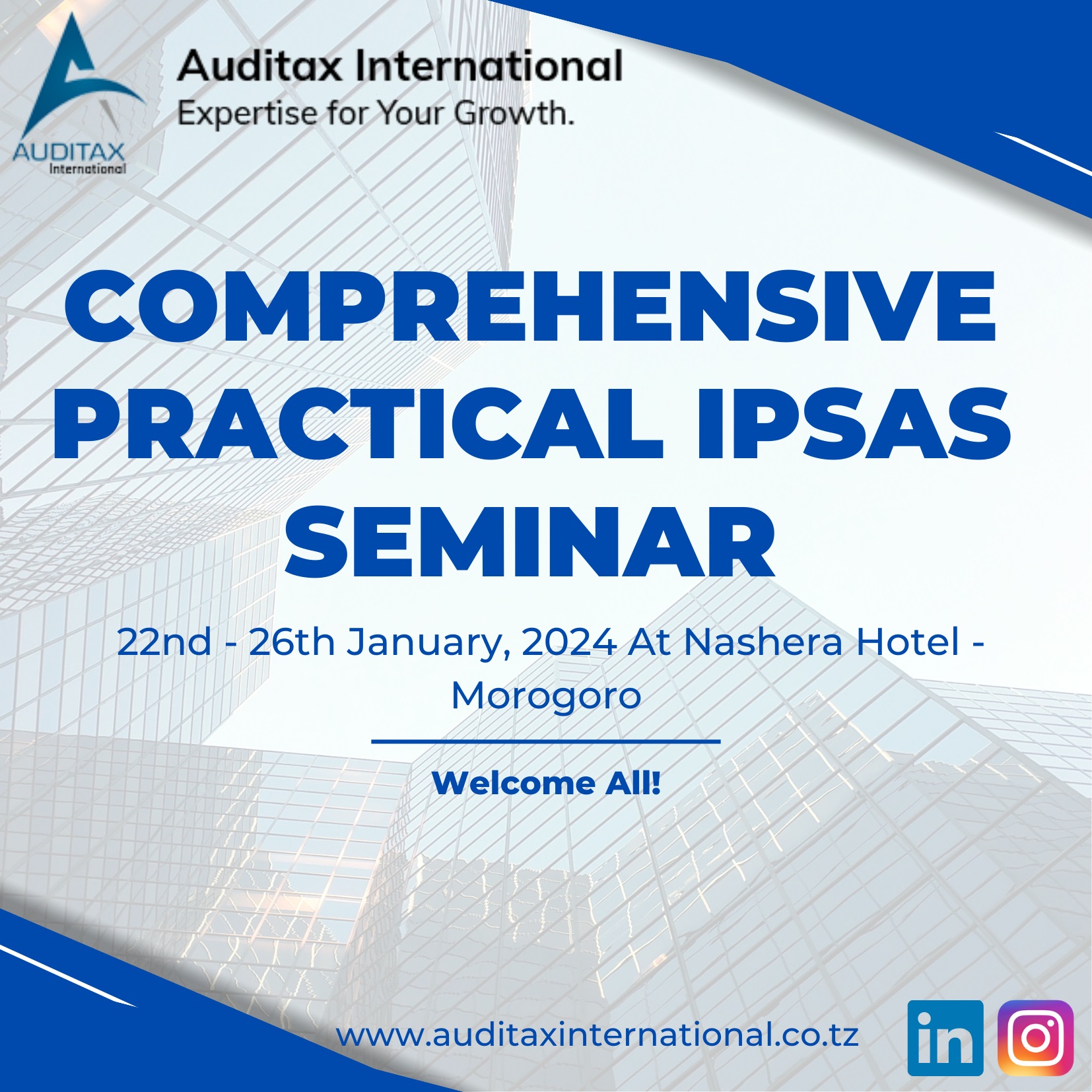 A 5 days Comprehensive Practical IPSAS Seminar with a focus on Financial Reporting for Public Sector and NGO’s with CPD hours from 22nd to 26th January 2024 at Nashera Hotel- Morogoro