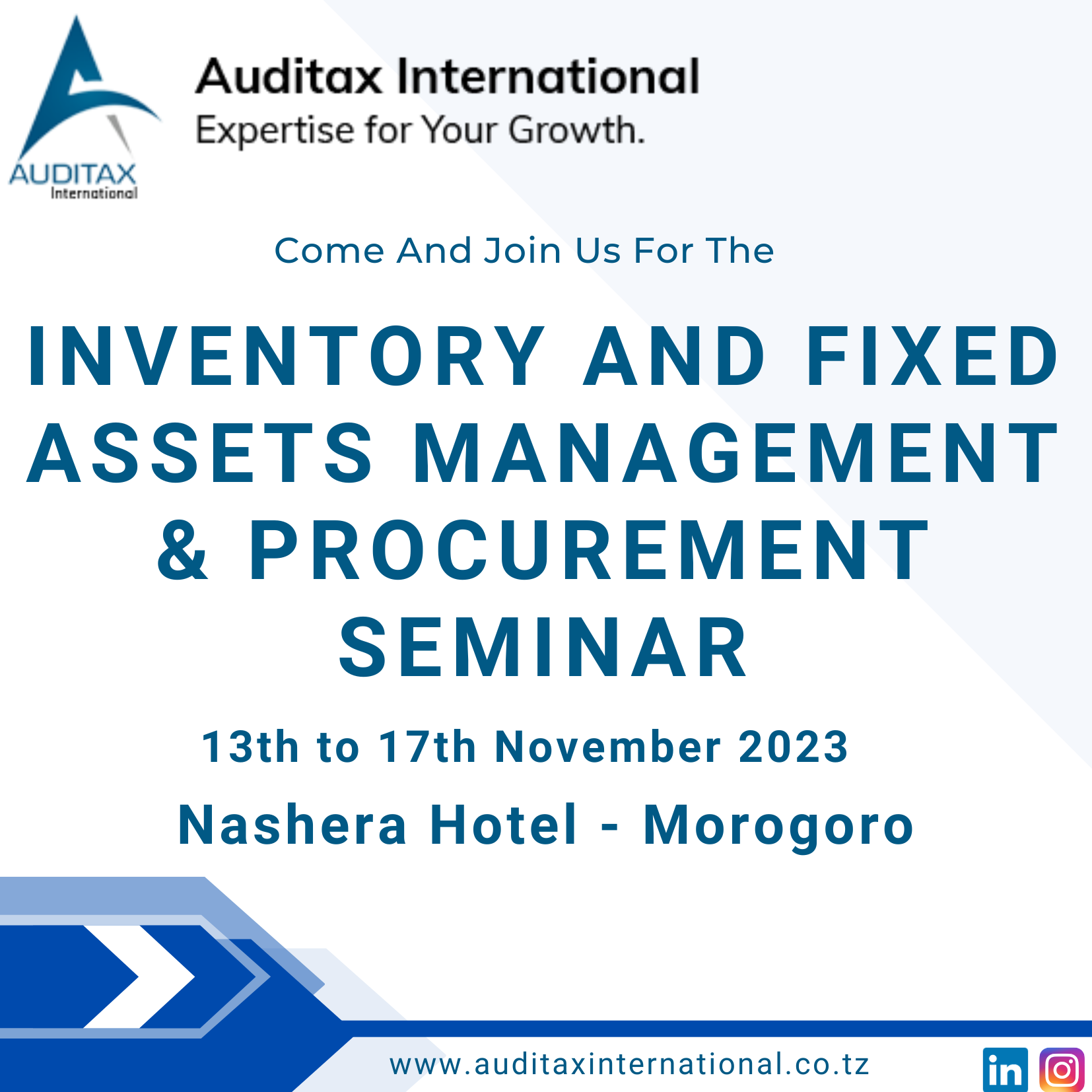 A 5 days Inventory and Fixed Assets Management & Procurement Seminar with CPD hours to be held at Nashera Hotel, Morogoro Region from 13th to 17th November 2023
