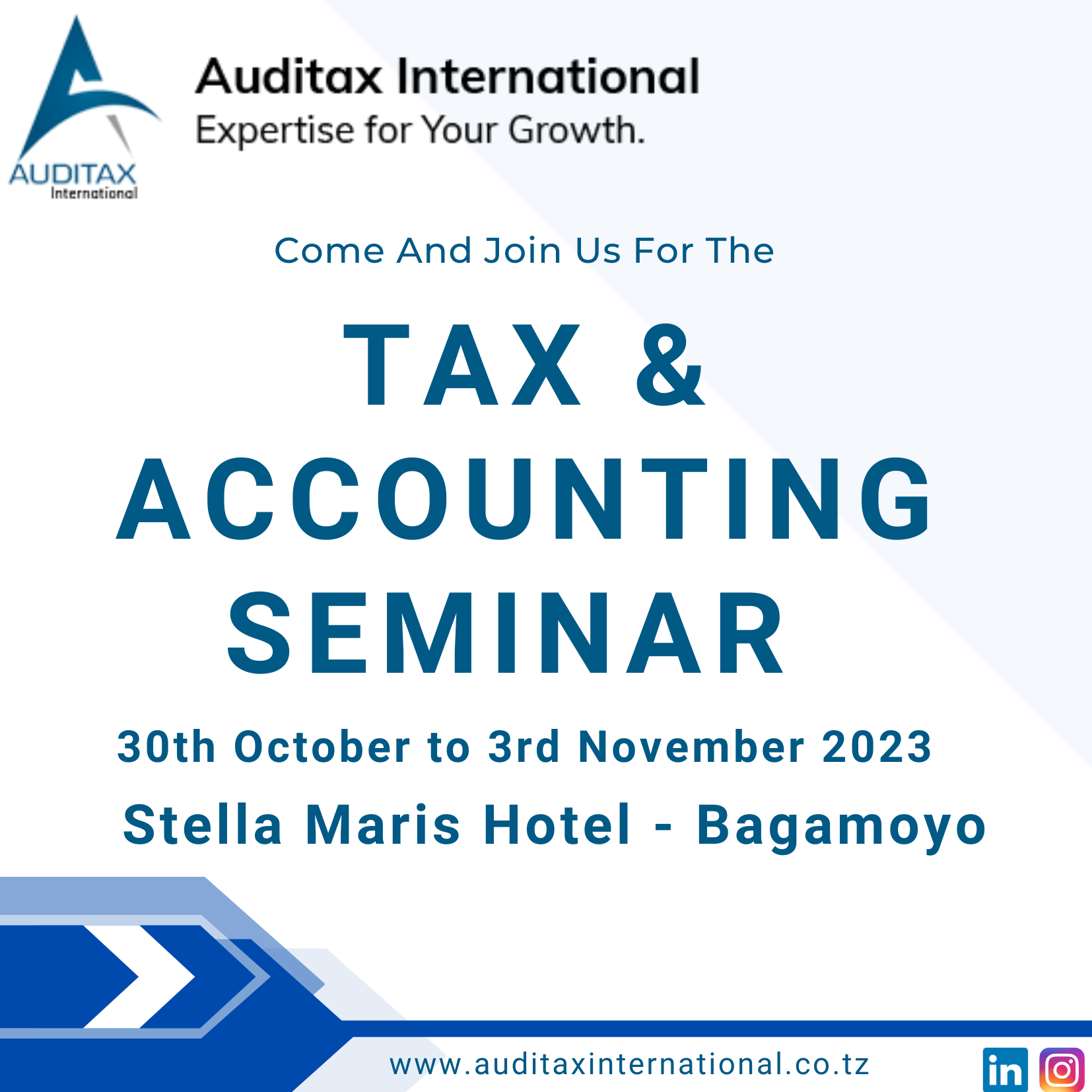 A 5 Days Tax & Accounting Seminar with CPD hours to be held at Stella Maris Hotel – Bagamoyo from 30th October to 3rd November 2023