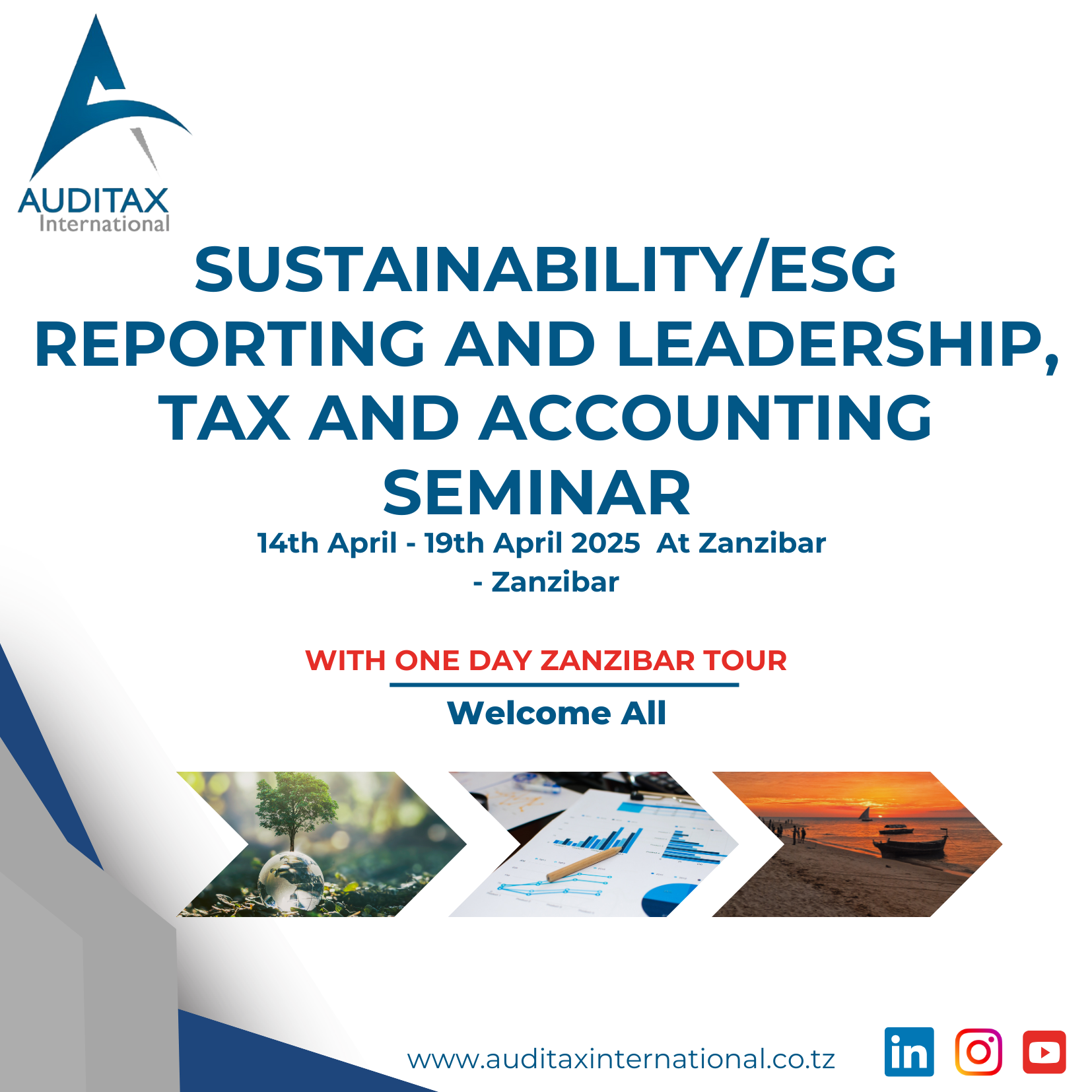 A 5 DAY SUSTAINABILITY/ ESG REPORTING AND LEADERSHIP, TAX AND ACCOUNTING SEMINAR WITH CPD HOURS TO BE HELD FROM 14TH TO 18TH APRIL 2025 AT SPICE TREE HOTEL ZANZIBAR, WITH ONE DAY ZANZIBAR TOUR
