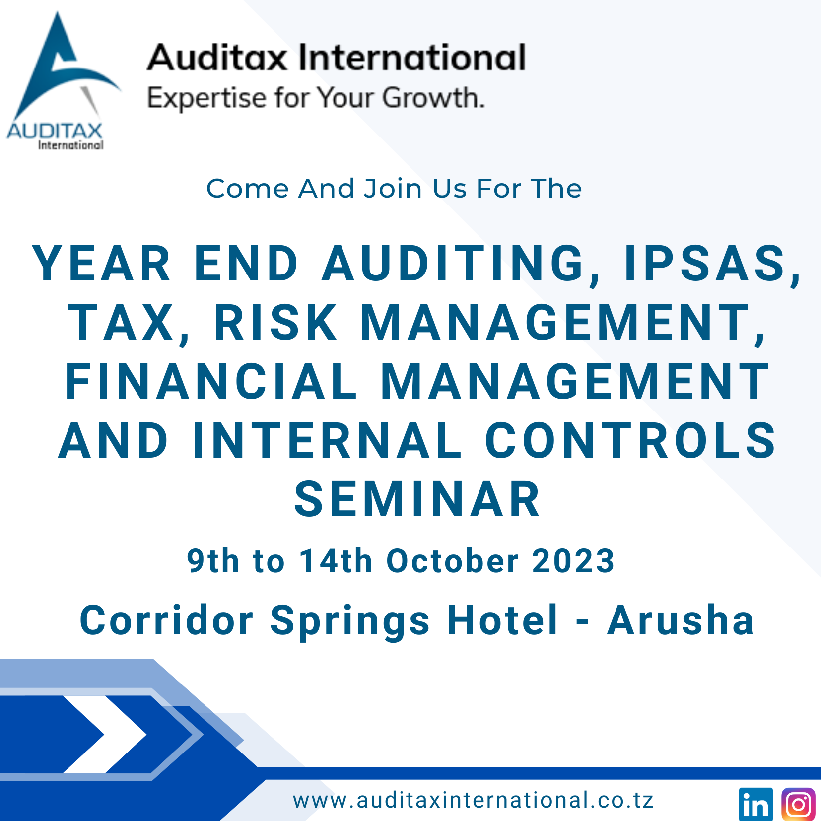 A PRACTICAL 6 DAYS YEAR END AUDITING, IPSAS, TAX, RISK MANAGEMENT, FINANCIAL MANAGEMENT AND INTERNAL CONTROLS SEMINAR WITH CPD HOURS TO BE HELD AT CORRIDOR SPRINGS HOTEL – ARUSHA FROM 9th TO 14th OCTOBER 2023 WITH ONE DAY NGOROGORO TOUR