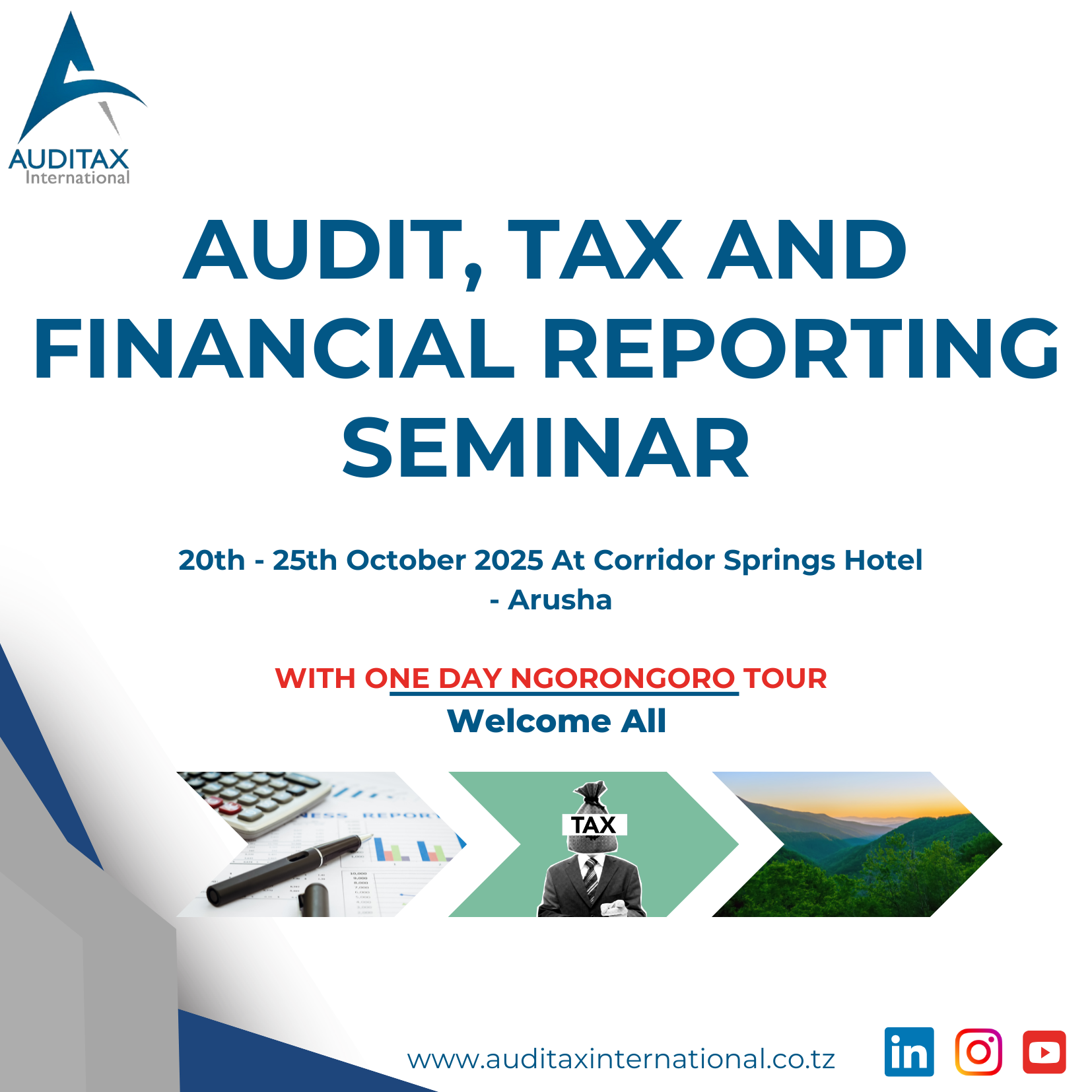 INVITATION TO A 6 DAY AUDIT, TAX AND FINANCIAL REPORTING SEMINAR WITH CPD HOURS TO BE HELD FROM 20TH TO 25TH OCTOBER 2025 AT CORRIDOR SPRINGS HOTEL – ARUSHA WITH ONE DAY NGORONGORO TOUR.